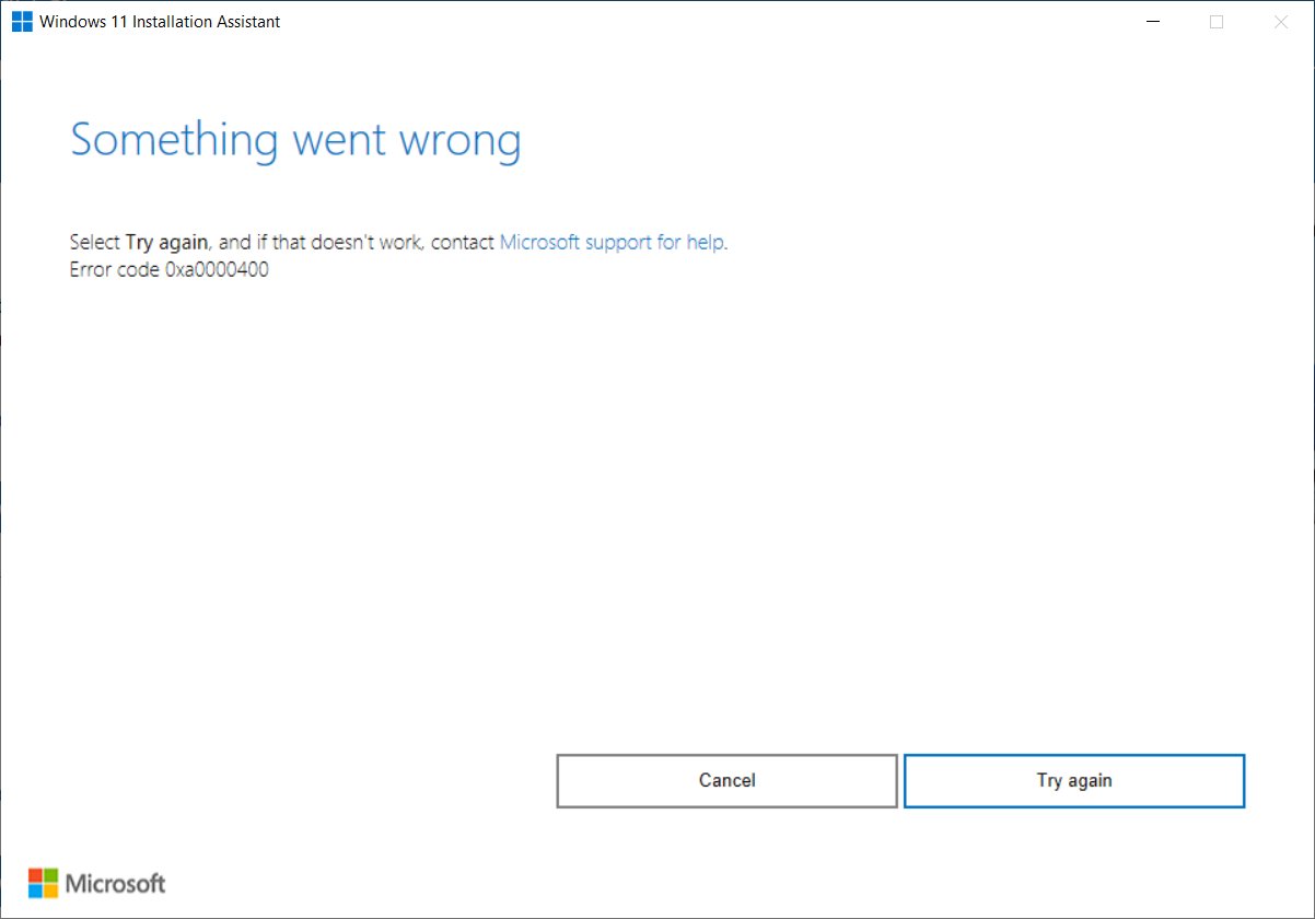 Windows 11 Upgrade 0xa0000400